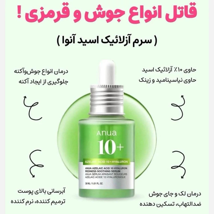 سرم آزلائیک اسید ۱۰ ٪ هیالورون آنوا ضد التهاب و قرمزی